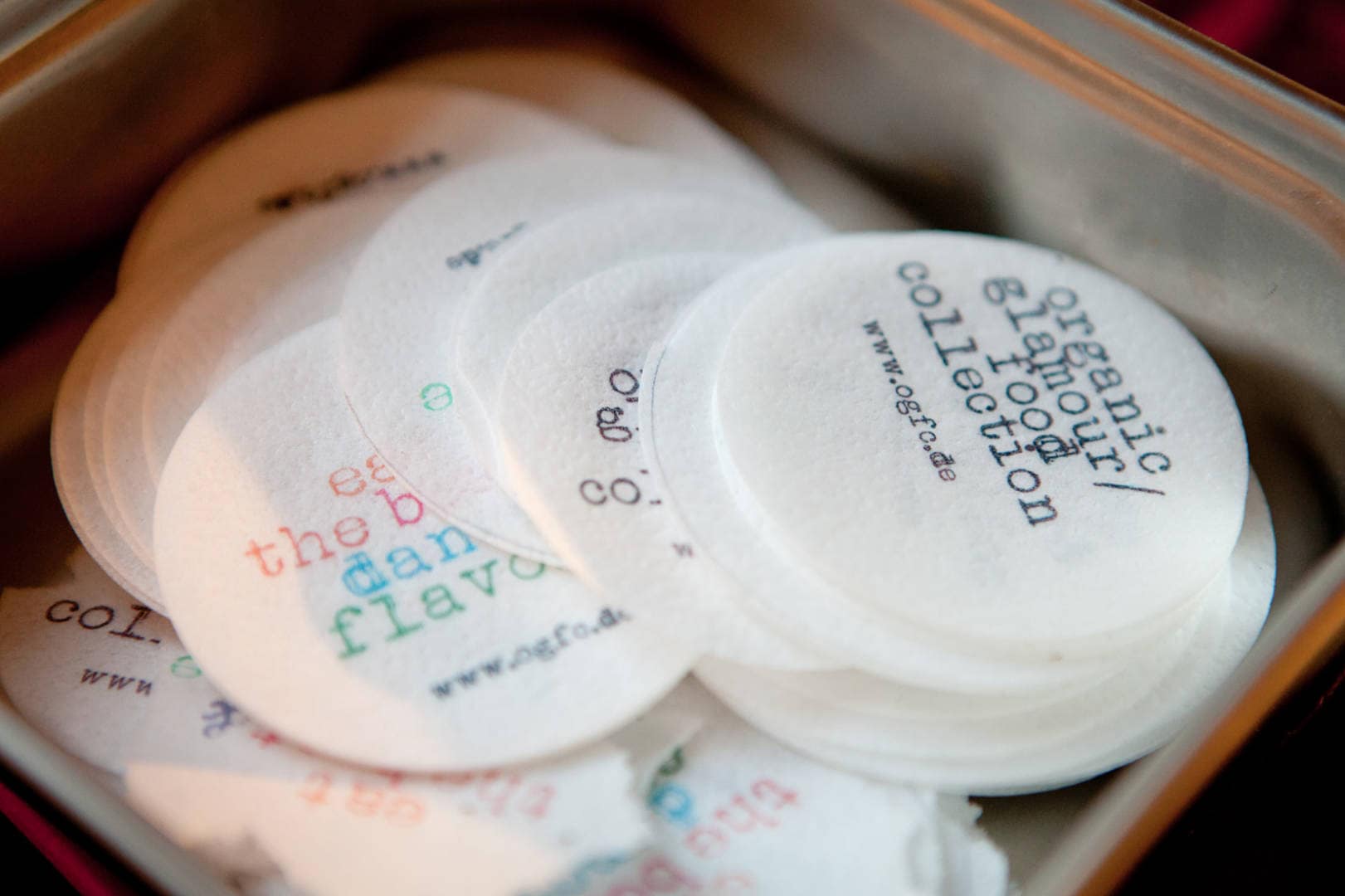 Bedrucktes Esspapier, schwarze Zuckersteine, bunte Gemüse in Variation dazu Knuspriges, Poppiges und Gepufftes rundeten die Popkultelle Idee des Foodsets ab, die Gäste aßen im Beat der Musik, alles war im gleichen Takt.